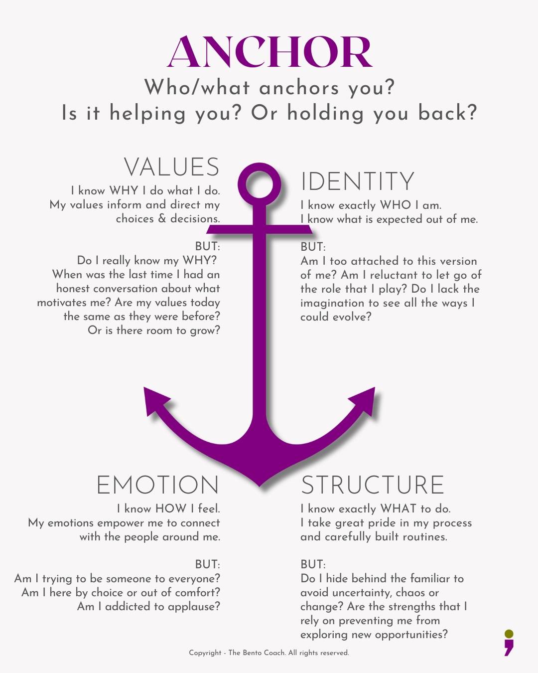 Anchors are important. They ground us. But they should never weigh us down. It's crucial to know the difference. Choose with awareness. And always leave room for change. Use these questions in addition to the monthly worksheet and reflect upon your anchors. Let us know how it went.